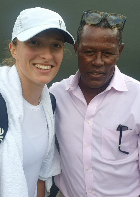Iga Swiatek and Habtu, 2023 Wimbledon | Habtu at July 2023 Wimbledon | Habtu in front of statue of Fred Perry (Champion, 1934-36) |
